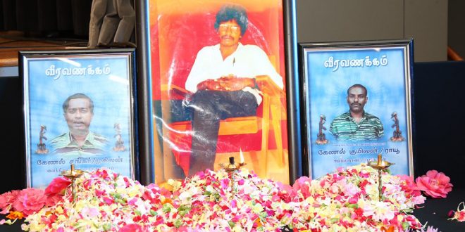 தியாகதீபம் லெப்ரினன்ற் கேணல் திலீபன் அவர்களது திருவுருவப் படத்திற்கு தமிழ்த் தேசிய செயற்பாட்டாளர் சிவானந்தன் அவர்கள் ஈகைச்சுடர் ஏற்றி மலர் வணக்கம் செலுத்தினார். மூத்த தளபதி கேணல் சங்கர் அவர்களுடைய திருவுருவப் படத்திற்கு தமிழ்த்தேசிய செயற்பாட்டாளர் திலகராஜன் அவர்கள் ஈகைச்சுடர் ஏற்றி மலர் வணக்கம் செலுத்தினார். சிறப்புத் தளபதி கேணல் ராயு அவர்களின் திருவுருவப்படத்திற்கு தமிழ்த் தேசிய செயற்பாட்டாளர் தயாபரன் அவர்கள் ஈகைச்சுடரேற்றி மலர்வணக்கம் செலுத்தினார்.