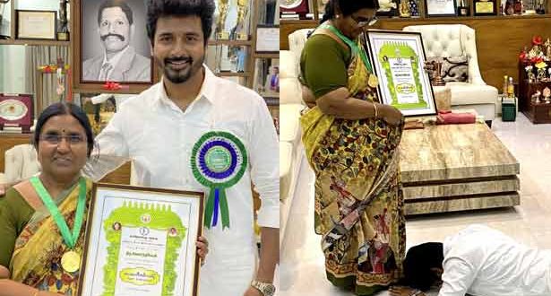 அத்துடன், முதலமைச்சரிடம் இருந்து விருது பெற்றபோது எடுத்த புகைப்படம் மற்றும் அந்த விருதை தாயாரிடம் கொடுத்து, அவரது காலில் விழுந்து ஆசி பெற்றபோது எடுத்த புகைப்படத்தையும் சிவகார்த்திகேயன் வெளியிட்டுள்ளார்.